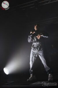 Hit, che lo hanno reso famoso presso il grande pubblico, quali “Faccio un casino” del 2017 sino ad arrivare a “Wu-Tang” a “Fra le nuvole” e “Flow easy” senza sosta e con un pubblico, che a gran voce lo accompagna sino al termine del live, soddisfatto e felice di averlo riascoltato.