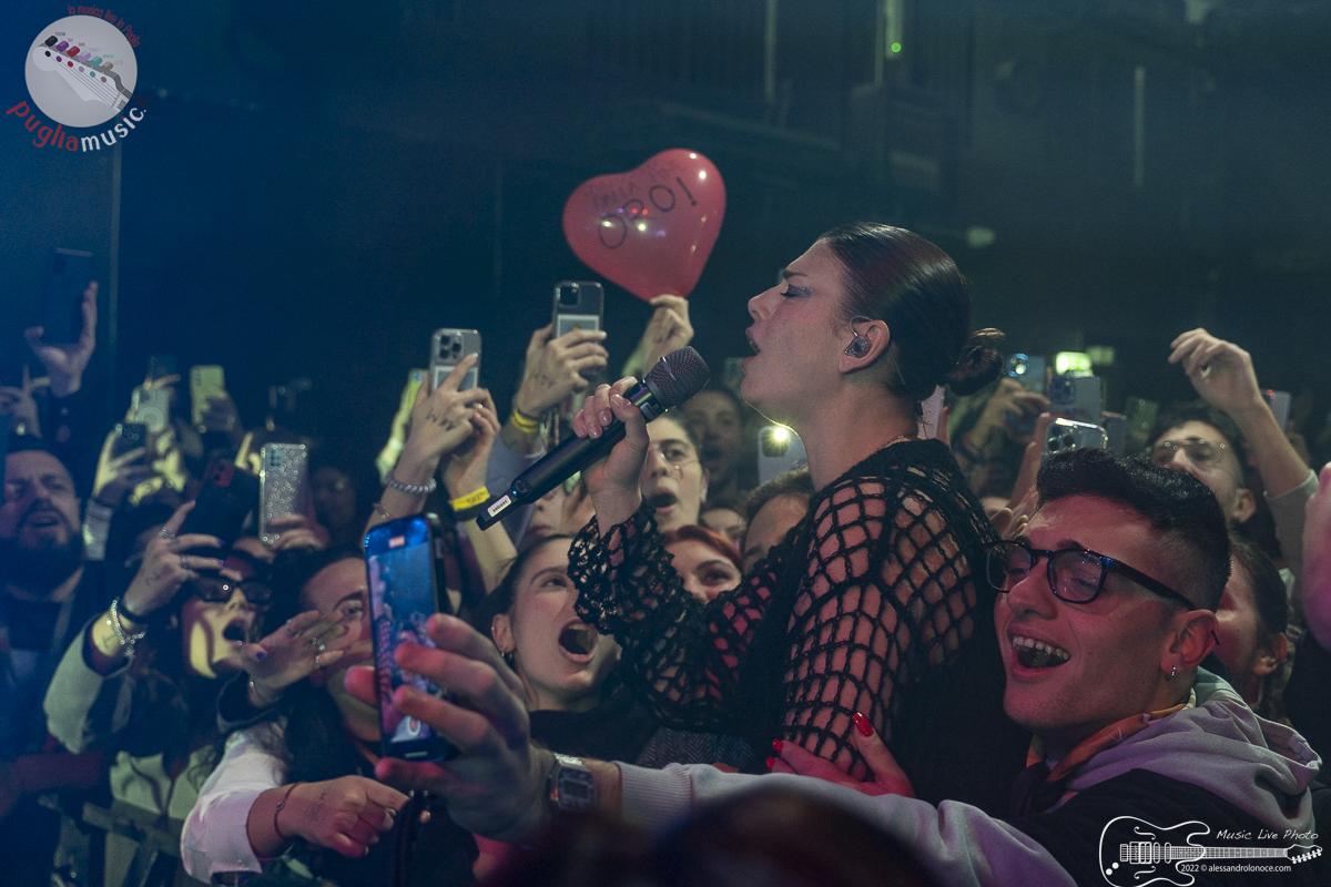 “Demodé Club” Modugno (BA), 18 dicembre 2023 – ORE 21:04 – “LA MAMMA È TORNATA DAVVERO” – è con questo incipit a lettere cubitali proiettato come scenografia dietro il palco, che Emma dà inizio alla sua seconda serata live al Demodé Club di Modugno (Ba) il 18 Dicembre 2023.