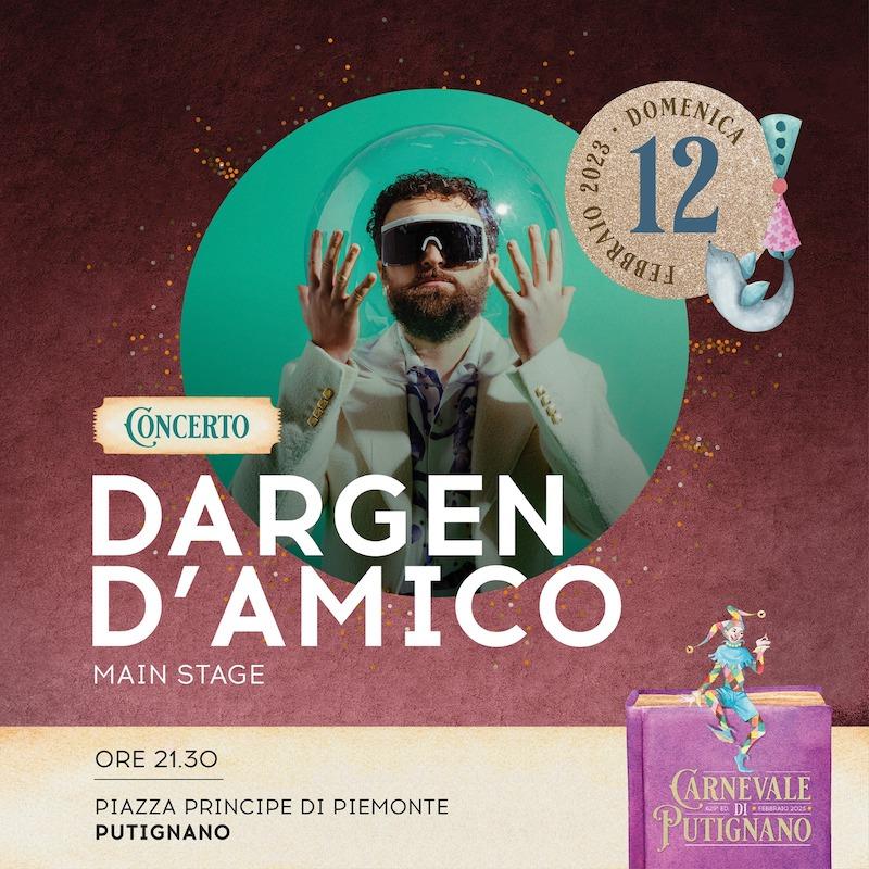 DARGEN D’AMICO in concerto, domenica 12 febbraio, ore 21.30 in piazza Principe di Piemonte, nell’ambito del secondo corso mascherato “Dove si balla”. Il Giudice di XFactor, premiato “Artista dell’anno 2022”, con la hit “Dove si balla” ha raccolto 58 milioni di ascolti su Spotify.