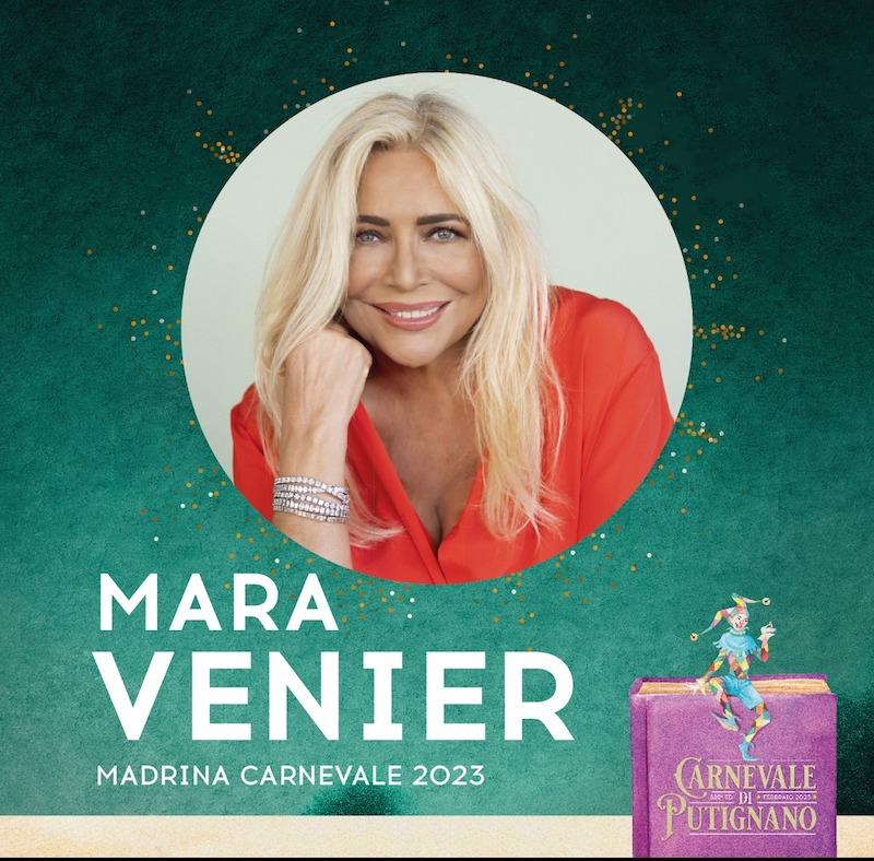 La Madrina della 629^ edizione del Canevale sarà MARA VENIER, a Putignano in occasione del “Fat Tuesday”, quarto corso mascherato del martedì grasso, il 21 febbraio dalle ore 18.30.