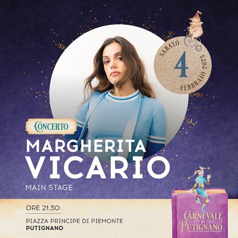 MARGHERITA VICARIO sarà in concerto, sabato 4 febbraio, ore 21.30 in piazza Principe di Piemonte, nell’ambito del primo corso mascherato “Opening Party”. Cantautrice pop-rap e anche attrice italiana, nota al pubblico tv e cinematografico.