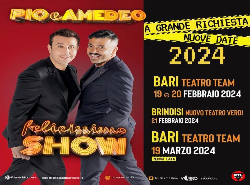 Grande successo ieri sera a Milano per l’ultima data del “FELICISSIMO SHOW” di PIO e AMEDEO, il tour che solo nel 2023 li ha visti protagonisti di oltre 40 date!