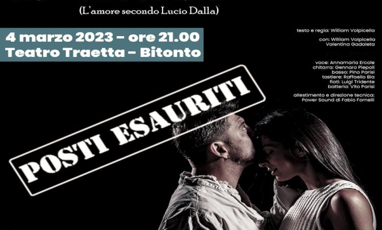È il caso di Tra vento e Mare – L’amore secondo Lucio Dalla che andrà in scena per la stagione del Teatro Pubblico Pugliese al Teatro Traetta di Bitonto questo 4 Marzo alle 21.00 per il testo e la regia di William Volpicella e i brani suonati dai Superclassifica Sciò (di cui Volpicella è frontman).