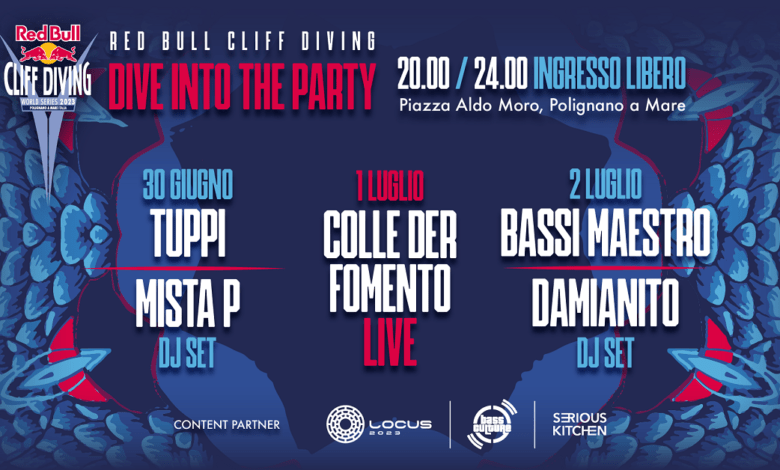 L’evento è prodotto da Bass Culture per Red Bull Cliff Diving, in collaborazione con Locus festival e Serious Kitchen.