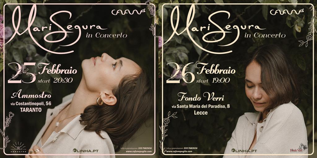 Per coloro i quali vorranno avvicinarsi alle sonorità esotiche di Mari Segura, il primo appuntamento è il 25 febbraio a Taranto, presso la sede di Ammostro (Via Costantinopoli, 56).