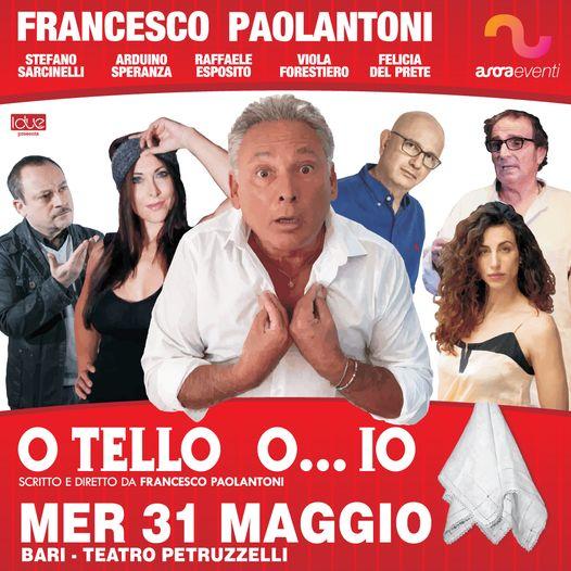 Può succedere di tutto o il suo contrario, specie quando sul palco c’è la brillante comicità di Francesco Paolantoni, che andrà in scena al Teatro Petruzzelli di Bari mercoledì 31 maggio alle 21, con la pièce «O Tello, o…io», in un attesissimo appuntamento organizzato da Aurora Eventi.