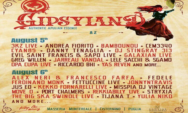orna con l’edizione più grande di sempre il festival Gipsyland, che per questa dodicesima edizione amplia la portata multidisciplinare dell’evento e incrocia la migliore musica elettronica del pianeta con la creatività e l’identità tipica del territorio pugliese.