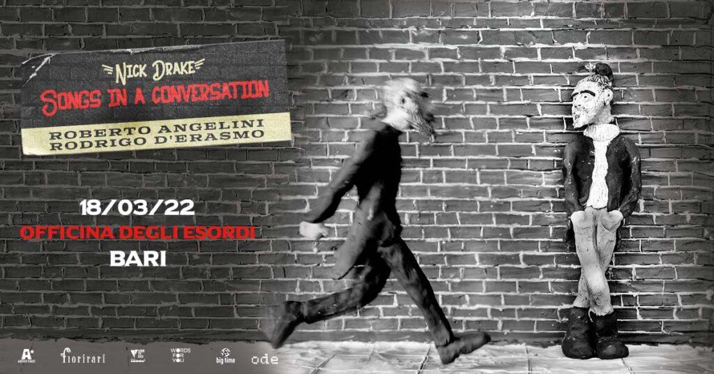 Un emozionante omaggio all’incredibile talento del cantautore inglese Nick Drake. Attraverso un mix di musica e parole, il duo Angelini e D’Erasmo presenterà “Songs In A Conversation” venerdì 18 marzo all’Officina degli Esordi.