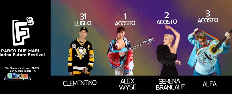 Un nuovo festival sta per approdare in terra jonica dal 31 luglio al 3 agosto 2025 con tanta musica e tante iniziative presso il nascente Parco Due Mari in via Simone Veil, nella zona industriale di San Giorgio Ionico (Taranto): il FIORINO FUTURE FESTIVAL.